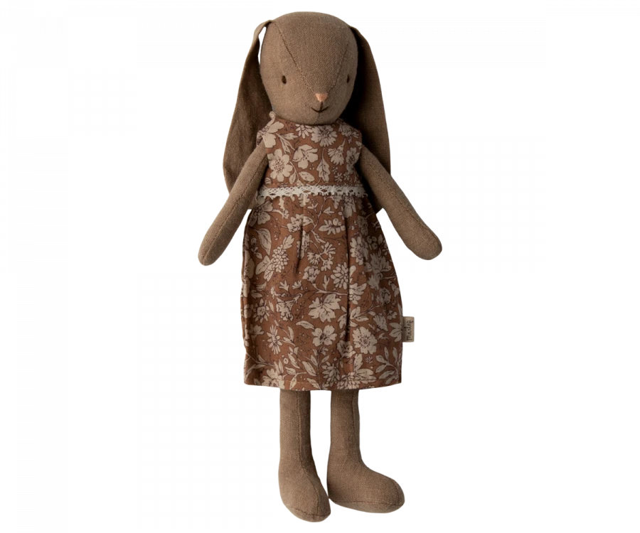 Bunny size 2 is updated in a beautiful new design for the FW23 collection. Her dress features custom Maileg fabric and charming little details like lace around the waist of the dress and a button closure on the back. Bunny’s sweet pink nose and adorable features are sure to steal your heart! Let the fun begin.