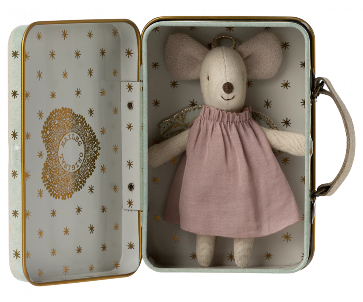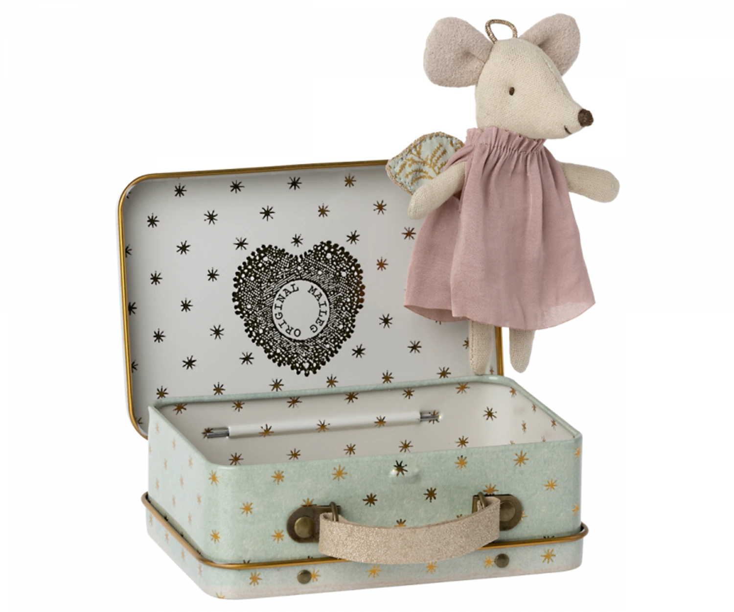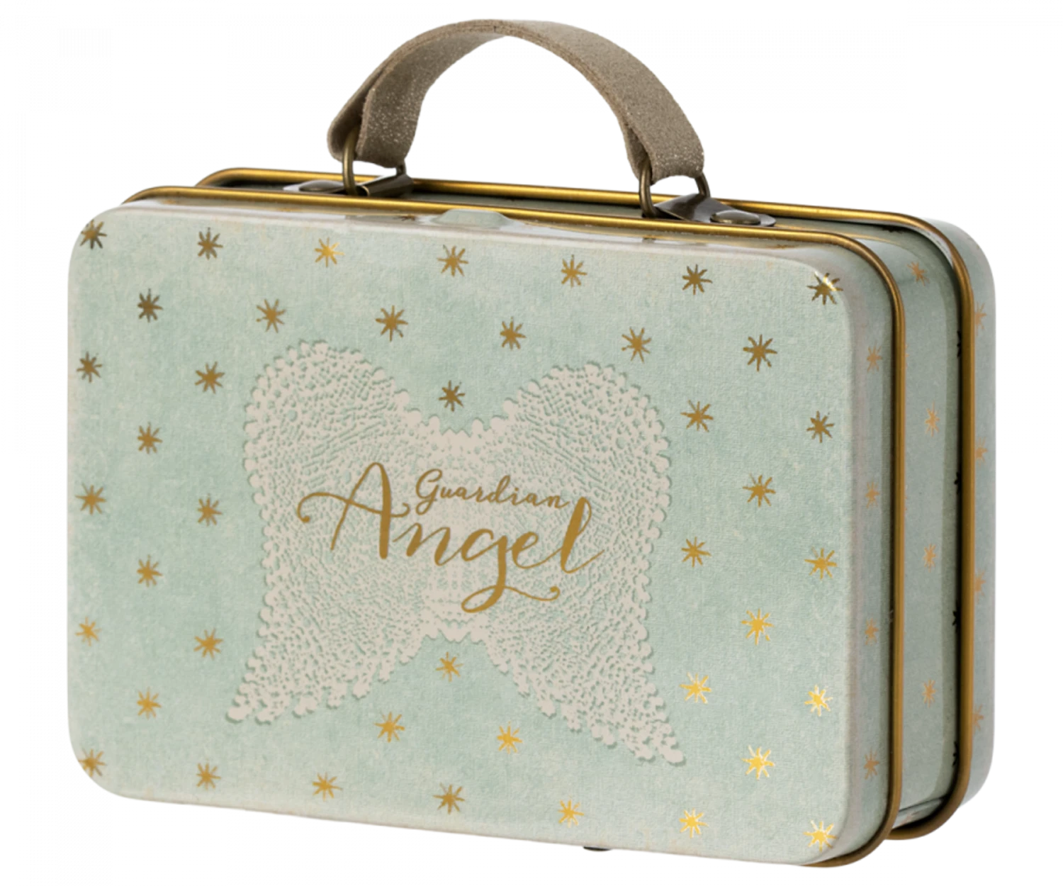 Guardian angels do their best to protect and watch over the little ones. This guardian angel comes in a mint coloured metal suitcase.
