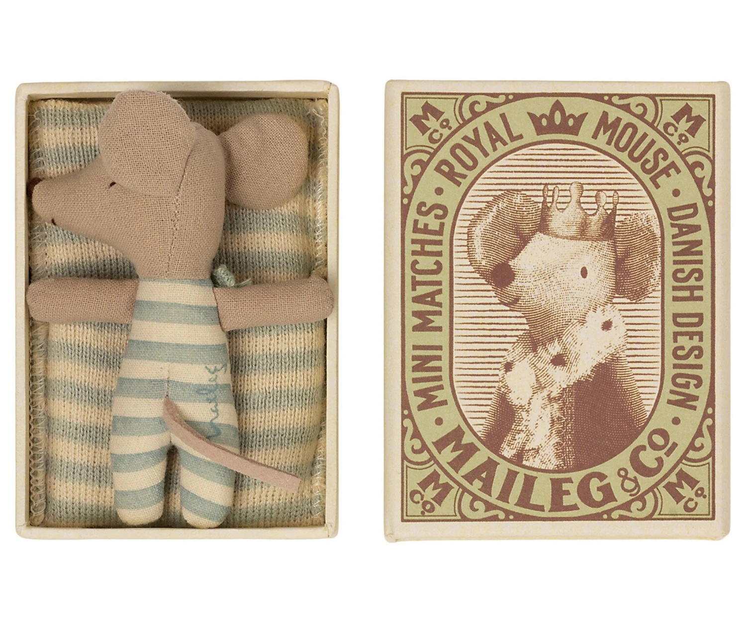 Maileg Baby Mouse in Box with Blue Stripes – Boy