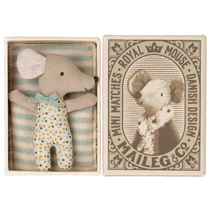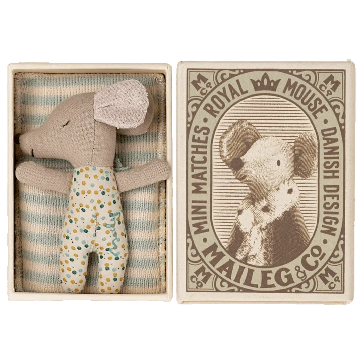 Maileg Baby Mouse – Sleepy Wakey In Matchbox – Blue