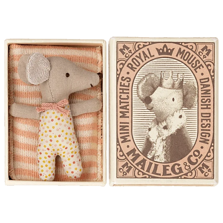 Maileg Baby Mouse – Sleepy Wakey In Matchbox – Rose