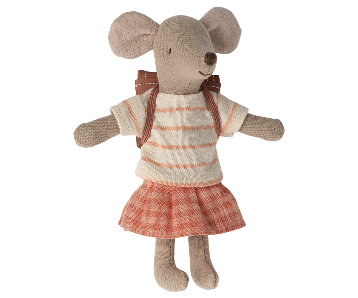 Maileg Big Sister Tricycle Mouse In Coral Details