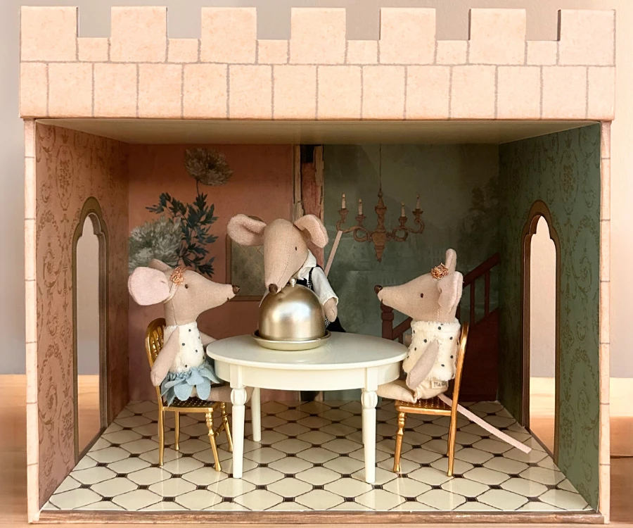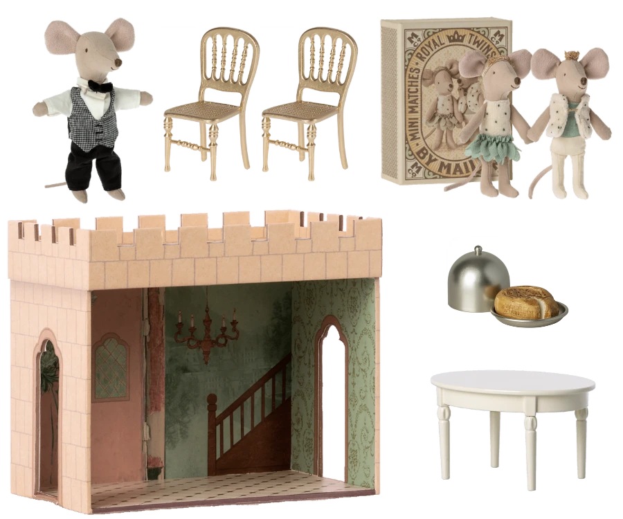 It’s time for summer vacation, and we have everything you need to hit the beach. This essential beach set includes our: micro wagon-blue, bag with beach essentials, sand toys, beach float-flower, and beach tube-red dot, as seen in the picture. This set arrives in a multi-dot tote bag, perfect for bringing your Maileg along with you!