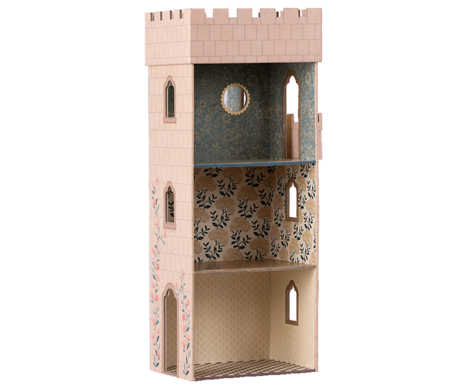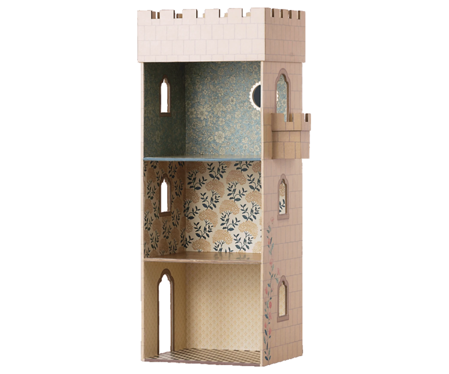 This castle is a beautiful home for all mice. It is made of cardboard covered by unique Maileg prints. Decorate it with your favorite accessories and furniture.