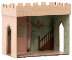 A beautifully designed cradle with a soft sleeping bag and inside. Specifically designed to fit our baby mice just perfectly, and looks darling in our castle. The cradle has rounded feet, so you can easily rock your, small soft friends, into sleep.