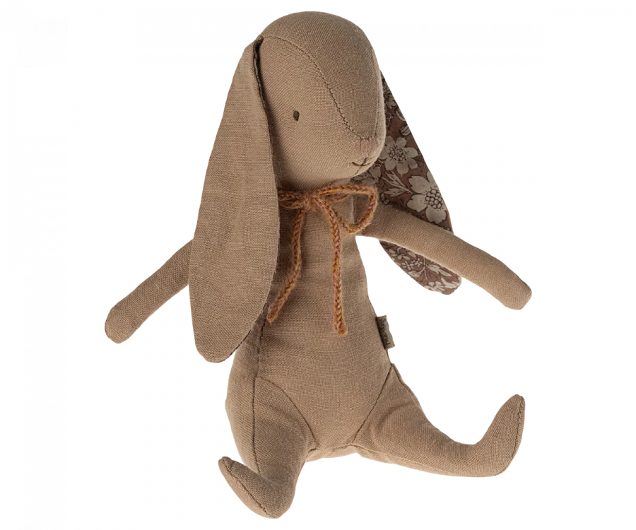 A soft bunny with a lovely bow around the neck. It has magnets in the hands so that it can easily hold small metal accessories.