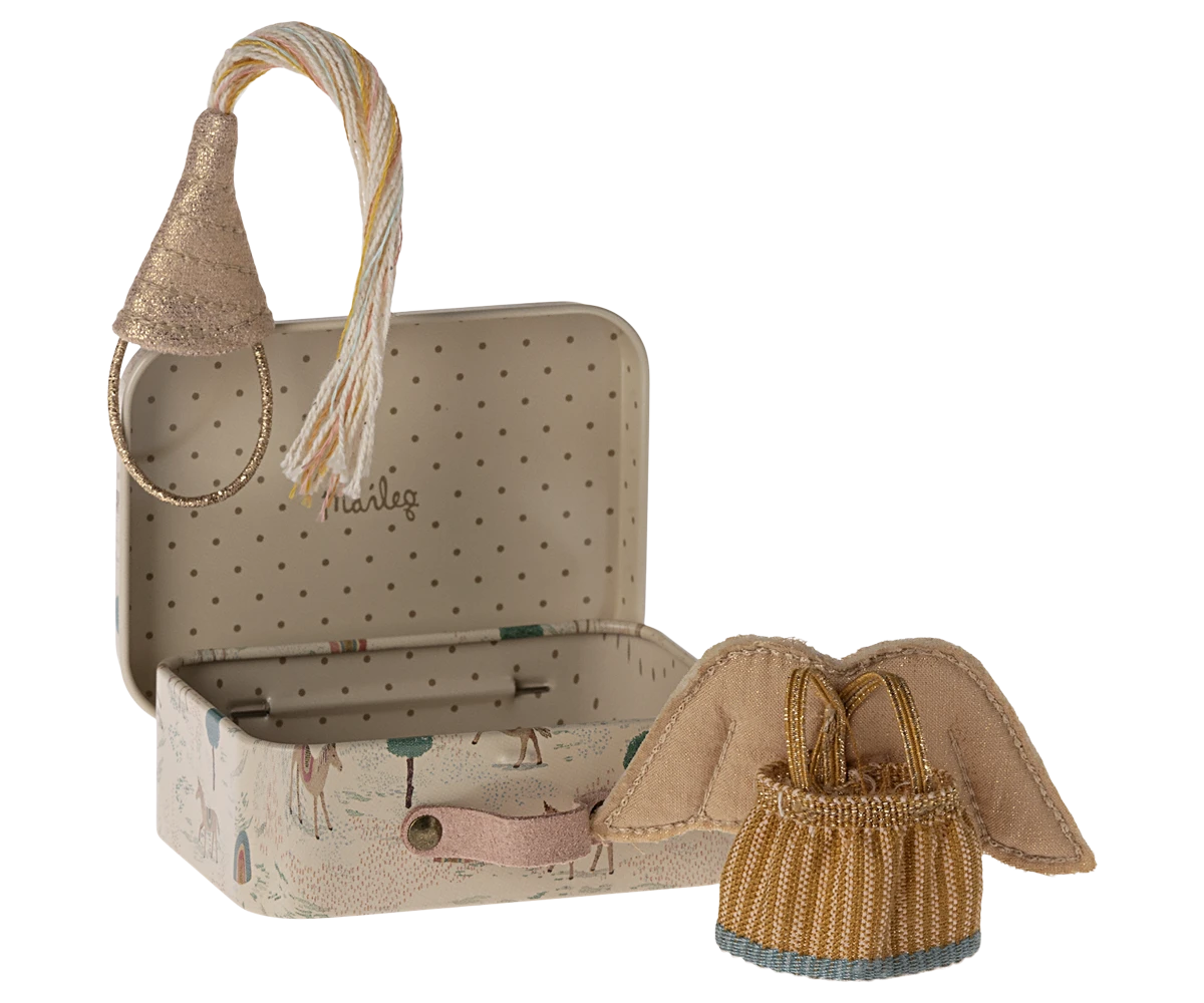 Dress up your little sister mouse in this lovely set of fairy clothes. This set inludes a skirt, wings and a hat – all packed in a small metal suitcase so it is easy to bring on the go.