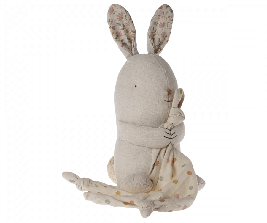 Lullaby friends is a collection of beautiful items for babies. This bunny has a soft cuddle cloth and will play a calm lullaby when you pull the tail. It is made in soft fabrics with unique prints and packed in a beautiful gift box.