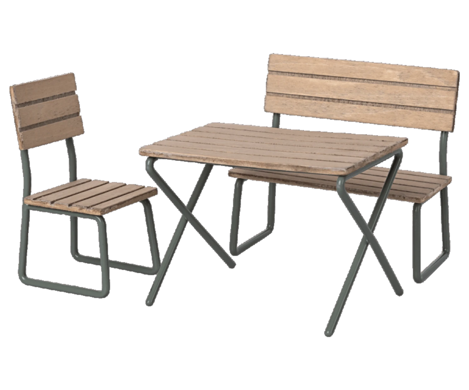 This charming garden set is perfect for get-togethers, tea time, and so much more. It’s designed to have a worn, vintage look, just like real patio furniture. It fits our mice and micro size friends.