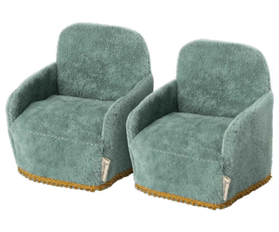 Your mice can settle down to read and relax in these cozy armchairs! They fit perfectly in the Maileg dollhouse.