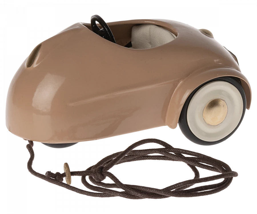 The metal car is a perfect transportation for any mice. It fits all mice in sizes little brother/sister, big brother/sister and mum/dad. The string included can be fastened under the car so the child can pull the car.