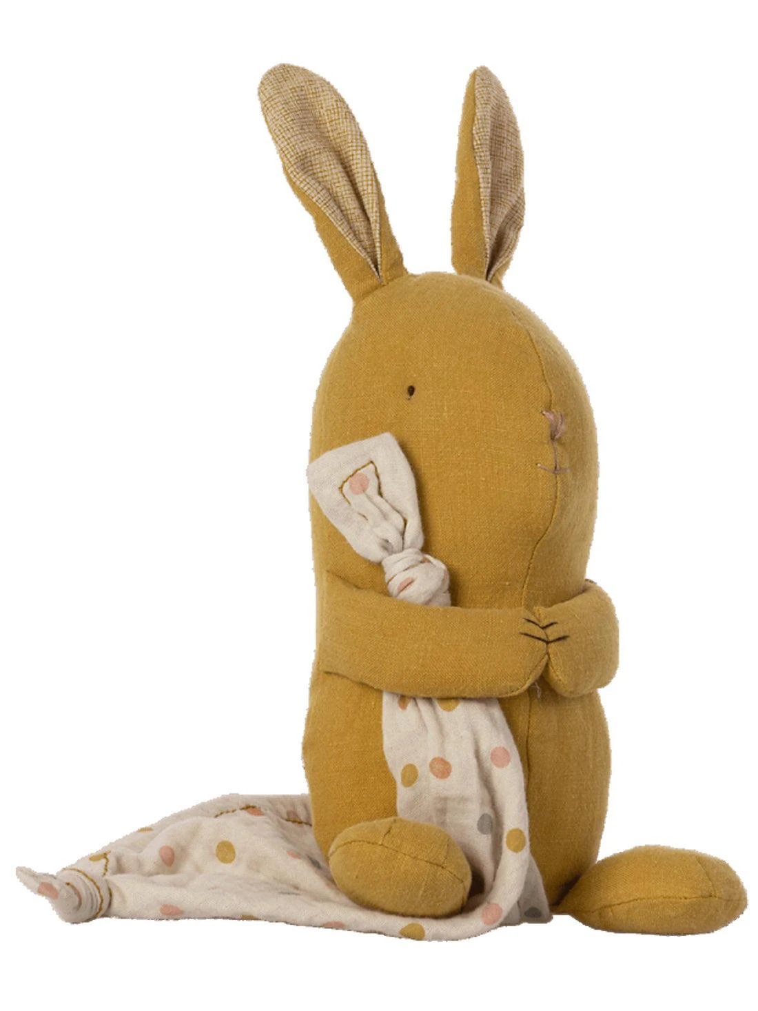 Lullaby friends is a collection with beautiful items for babies. This bunny has a soft cuddle cloth and will play a calm lullaby when you pull the tail. It is made in soft fabrics with unique prints and is packed in a beautiful giftbox.