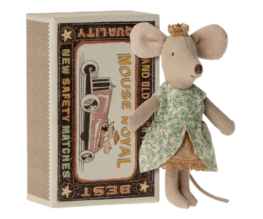 The lovely Princess Mouse is loyal and true. She’s the fairest mouse in all the land! Her matchbox has a cozy mattress, pillow, and blanket. Ā