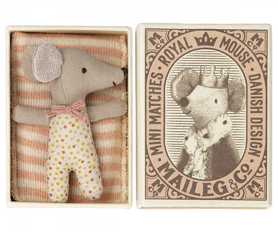 The Sleepy Wakey baby mouse is soundly sleeping on one side and wide awake on the other. This little mouselet comes in a matchbox bed.