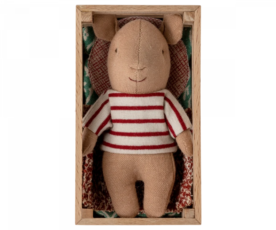 A sweet and cozy playset for imaginations to run wild. This cute little piglet cuddled up in its wooden box with cozy bedding, making a wonderful addition to any story. Add the bigger pigs to expand the playtime!